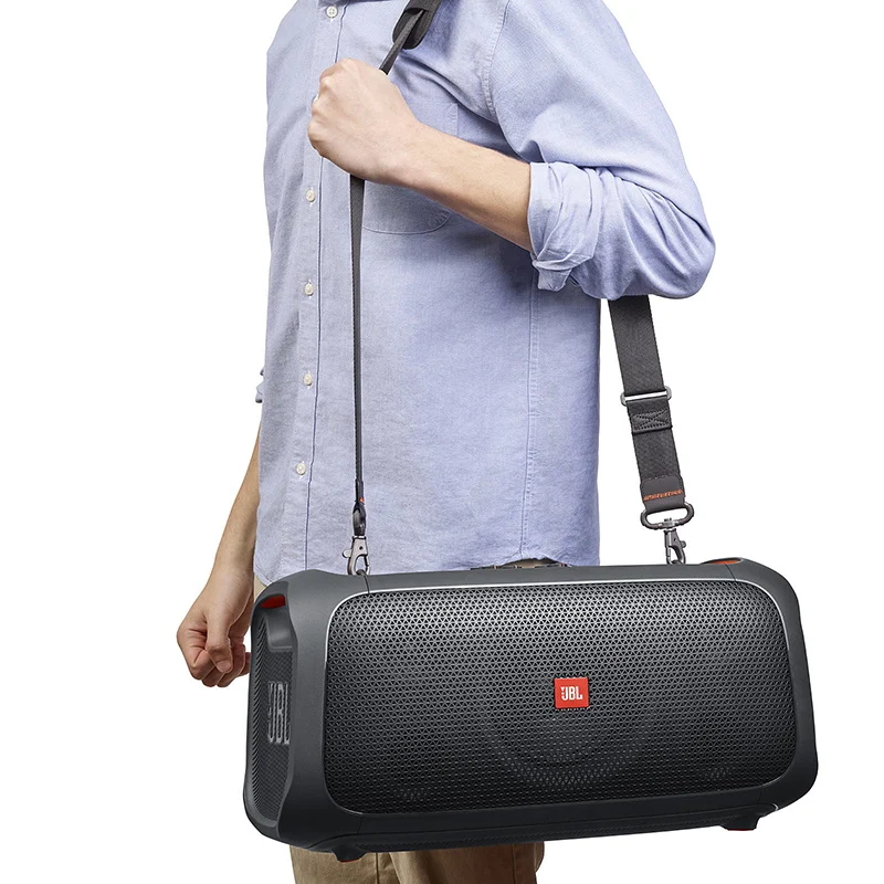 اسپیکر JBL PartyBox On-The-Go تمام آنچه برای برپایی یک مهمانی حرفه‌ای نیاز دارید را در یک پکیج پرتابل جمع کرده است. این محصول با صدای مشهور JBL Pro Sound و توان خروجی ۱۰۰ وات، استانداردهای جدیدی را در رده اسپیکرهای چمدانی تعریف می‌کند. برخلاف رقبا، این مدل در فروشگاه مغازه به همراه یک میکروفون بی‌سیم باکیفیت ارائه می‌شود تا لذت کارائوکه و اجرای زنده را در هر مکانی، از حیاط خانه تا ساحل دریا، تجربه کنید.