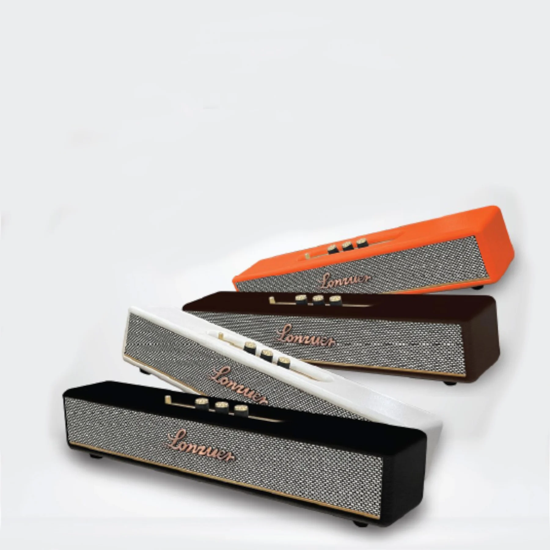 اسپیکر بلوتوثی قابل حمل لونزور مدل Beyond با ترکیب زیبایی شناسی و قدرت صوتی، یک انتخاب خاص در میان اسپیکرهای خانگی قابل حمل است. شرکت LONZUER در طراحی این ساندبار، از روکش چرمی بسیار زیبا و اجزای فلزی طلایی جذاب استفاده کرده است. این اسپیکر در عین داشتن ظاهری کوچک و دراز، حجم و قدرت صوتی بالایی دارد که برای اولین تجربه شنیداری شگفتانگیز خواهد بود. با استفاده از ۲ ووفر ۱۵ وات و ۲ توییتر ۱۰ وات، توان خروجی کلی این دستگاه به ۵۰ وات میرسد تا صدایی عمیق، نرم و با جزئیات کامل به گوش برسد.