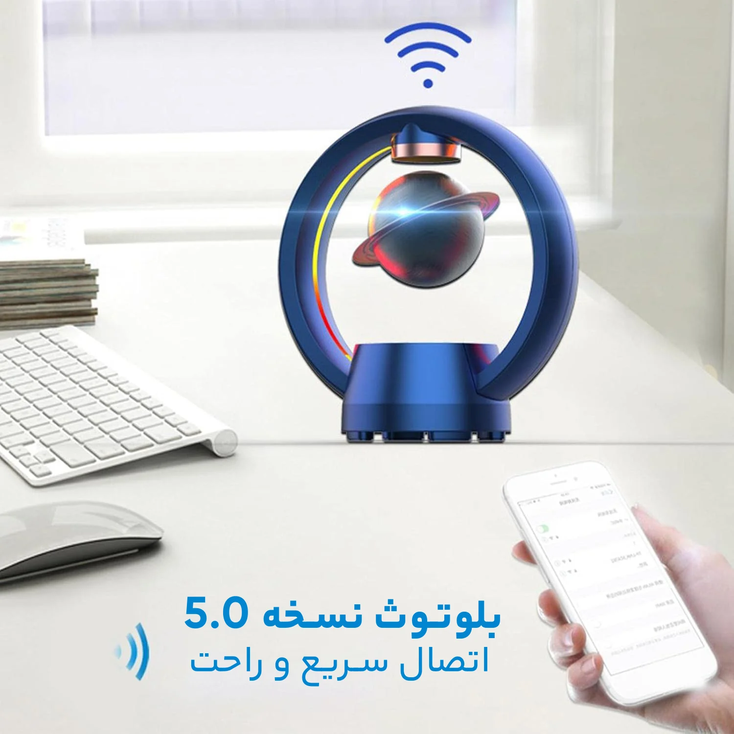 اسپیکر C1 باکیفیت عالی کره زحل معلق روی اسپیکر همراه با نورپردازی RGB