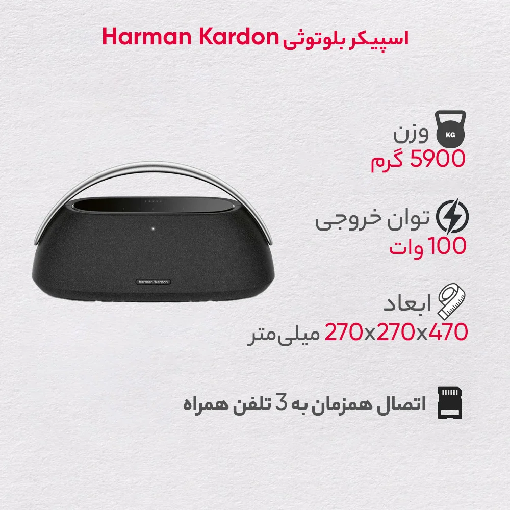 اسپیکر بلوتوثی هارمن کاردن مدل Go Play 3 2023 انتخابی فراتر از یک اسپیکر معمولی است؛ این محصول یک بیانیه هنری و صوتی در خانه یا محل کار شماست. اگر به دنبال بیسی عمیق، وضوح صدای استودیویی و طراحی اشرافی هستید، این مدل ۲۰۲۳ در فروشگاه مغازه تمام انتظارات شما را برآورده میکند.
