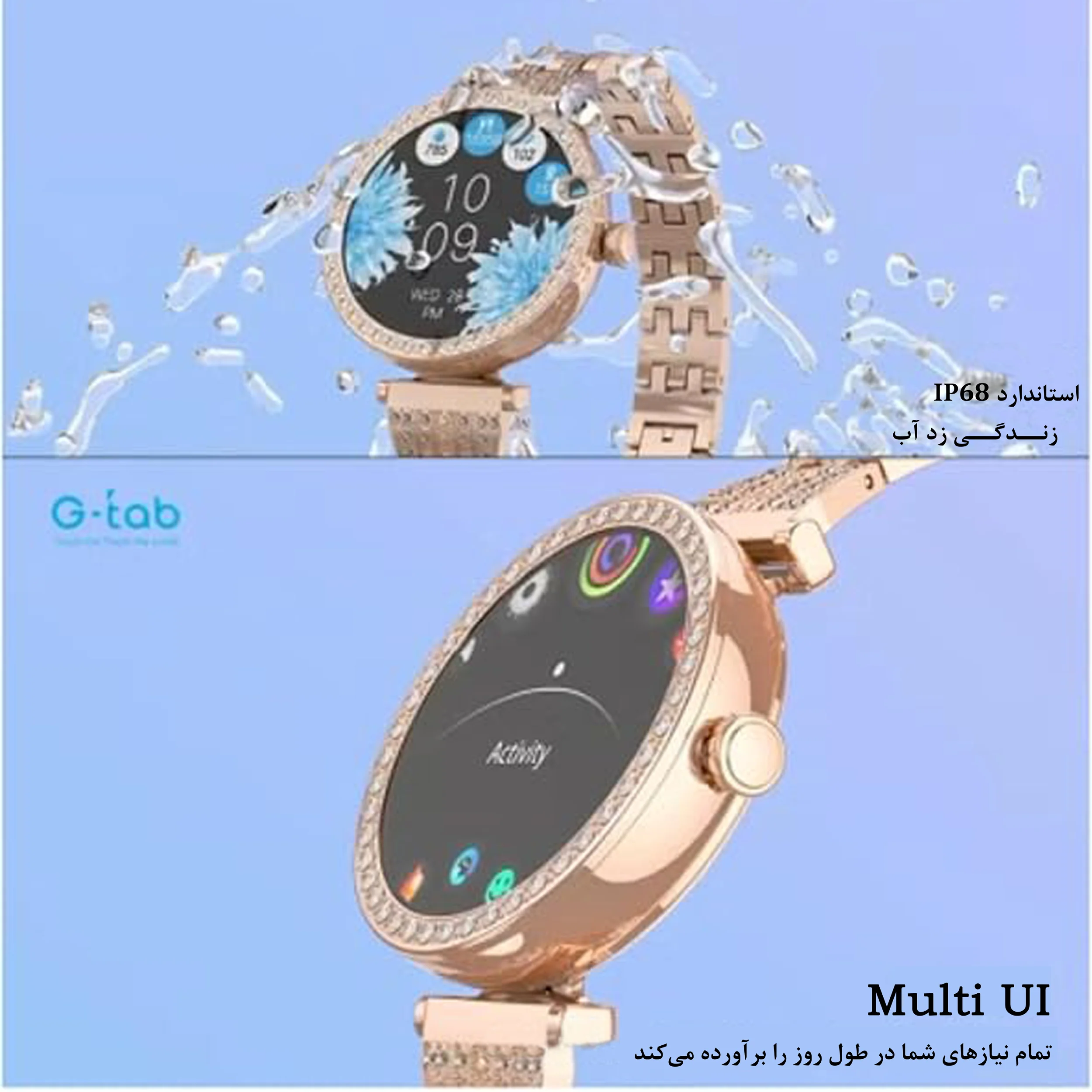 | توضیحات رنگ بند و بدنه | یک عدد بند استیل طلایی رنگ ثابت و یک عدد بند سیلیکونی صورتی |