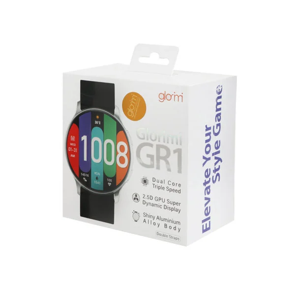 یکی از ویژگی های فوق العاده جذاب این نمایشگر هم، قابلیت همیشه روشن بودن آن است. نمایشگر از نوع 2.5 بعدی سوپردینامیک هست و توانایی به نمایش گذاشتن کیفیت بالایی را دارد. در ساختار آن از میکروفون و اسپیکر بهره بردند. صفحه ساعت هوشمند گلوریمی را به صورتی گرد طراحی نمودند و بدنه ای از جنس آلومینیوم براق دارد. ساعت مورد نظر در ابعاد 11×45 میلی متر تولید شده است و عرض بندهای آن هم 22 میلی متر می باشد.