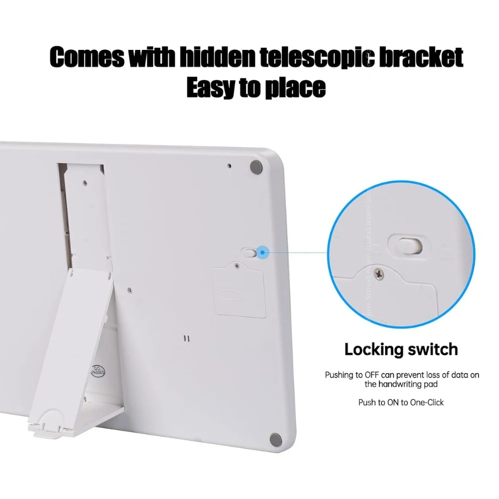 | سایر توضیحات | دارای کاغذ دیجیتال به همراه قلم دارای استند به جهت استفاده در حالت ایستاده صفحه نمایش دیجیتال دو خطی با قابلیت نمایش اعداد تا 8 رقم قابلیت نمایش ساعت و دمای محیط |