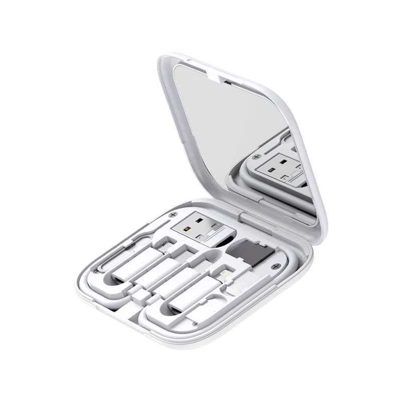 با باز کردن جعبه، PCK004 در مقابل چشمانتان خودنمایی میکند. طراحی مربع با گوشههای گرد، حس ظرافت و لطافت را به شما القا میکند. این باکس کابل به اندازهای کوچک و جمع و جور است که به راحتی در جیب شما جای میگیرد، گویی آینهای از دنیای دیجیتال را در جیب خود حمل میکنید.