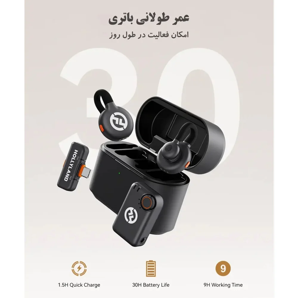 میکروفون بی سیم هالی لند LARK M2S Combo از برند Hollyland با وزن تنها 7g به راحتی روی یقه یا لباس قرار می‌گیرد. از مهم‌ترین ویژگی‌های این میکروفون می‌توان به وزن سبک، طراحی منحصربه‌فرد با گیره تیتانیوم، صدای شفاف و طبیعی، حذف نویز محیط (2 سطح)، برد میکروفون تا 300m (بدون مانع)، نشانگر LED، استفاده همزمان دو کاربر و … اشاره نمود. این میکروفون بی‌سیم قابلیت اتصال به دوربین دیجیتال، موبایل (اندروید، آیفون)، کامپیوتر و لپ‌تاپ و … را دارد. از میکروفون یقه‌ای Hollyland LARK M2S Combo می‌توان برای پخش زنده، سخنرانی در همایش و کنفرانس، تهیه خبر، آموزش آنلاین، مصاحبه، تولید محتوا و … استفاده نمود.میکروفون بی سیم هالی لند مدل M2S Combo دارای باتری داخلی قابل شارژ است. به این ترتیب، می‌توان از هر فرستنده به مدت 9 ساعت (noise cancellation خاموش) و 30 ساعت با استفاده از کیس شارژ استفاده نمود.از دیگر ویژگی‌های میکروفون یقه‌ای Hollyland LARK M2S Combo می‌توان اپلیکیشن LarkSound (اندروید/آیفون) اشاره نمود. با استفاده از این اپلیکیشن می‌توانید پارامترهایی همچون حجم صدا، حذف نویز، به روز رسانی فریمور و … را تنظیم نمود. همچنین وجود کابل USB-C به لایتنینگ به شما امکان می‌دهد تا بتوانید این میکروفون را به گوشی‌های آیفون ( مدل‌های قبل از آیفون 15) متصل نمایید.