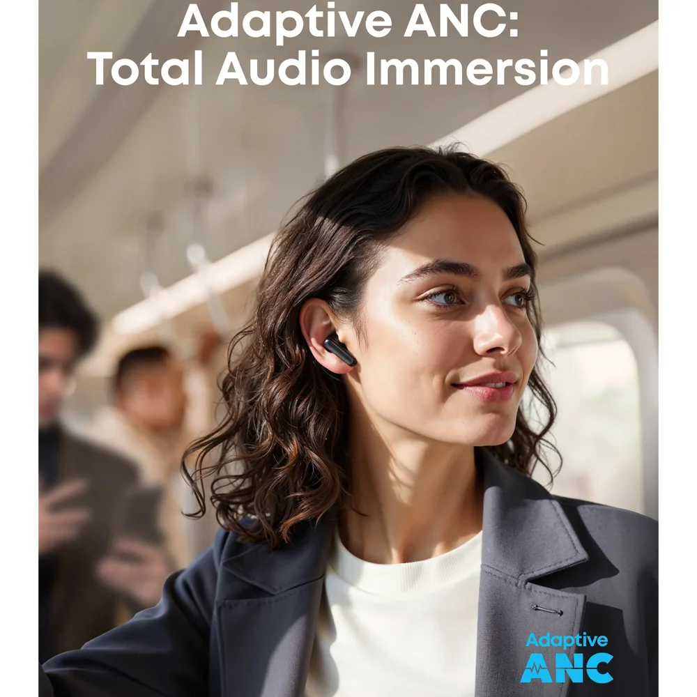 • حذف نویز تطبیقی (Adaptive ANC): این فناوری هوشمند، شدت حذف نویز را به صورت خودکار با توجه به محیط تنظیم می‌کند تا تجربه‌ای بهینه داشته باشید.