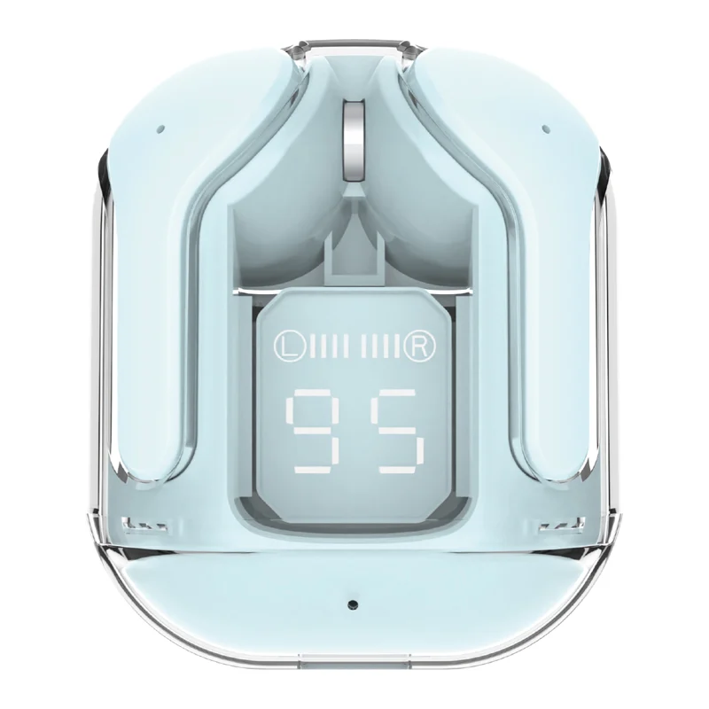 یکی از ویژگیهای بسیار جذاب و شاید رقابتی این محصول ظاهر آن باشد. تی سی اچ T60 به شکلی طراحی شده که با یک نگاه جلب توجه کند. کیس این محصول شفاف است. روی این قاب شفاف یک LCD هم قرار گرفته که میزان شارژ بادزها را نشان میدهد. روی لبه پایینی کیس هم تنها پورت شارژ USB-C دیده میشود. بادزها بدنهای پلاستیکی دارند که برخلاف کیس اصلا شفاف طراحی نشدهاند و ظاهری کلاسیک مانند اکثر بادزها دارند.