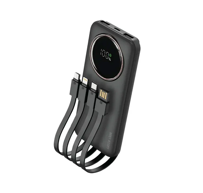 کابلهای تعبیهشده در بدنه: مجهز به سه کابل داخلی شامل Type-C، Lightning و Micro-USB که به صورت منظم در بدنه جاسازی شدهاند.