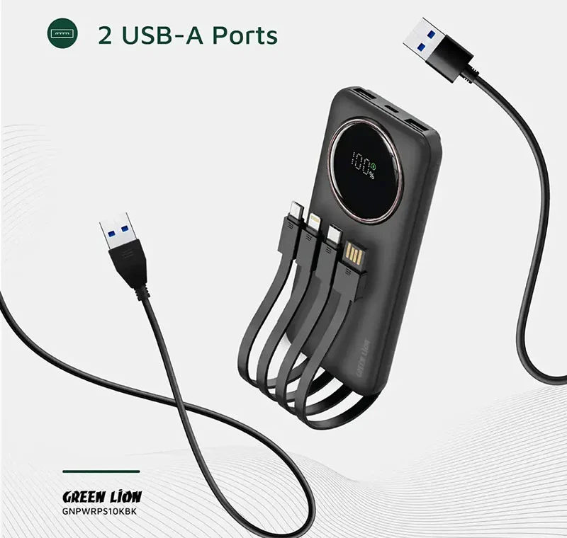 پورتهای متنوع: علاوه بر کابلهای داخلی، دارای پورت ورودی/خروجی Type-C و خروجی USB-A برای اتصال کابلهای مجزا.